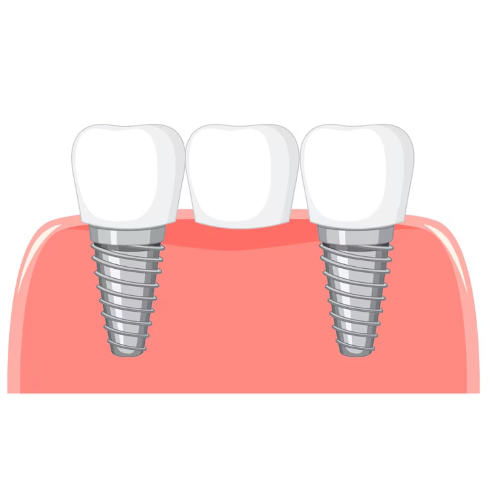 Used when several teeth are missing. Implants can support a bridge, restoring function and aesthetics across multiple teeth.